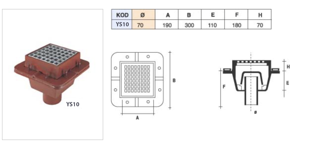YS10 Yer Süzgeci (Yalıtım Flanşlı ve Sifonlu) Teknik Döküman